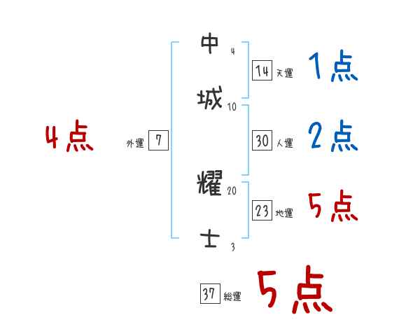 外運![]() | 中城耀士さんの外運は7画の4つ星!強い意志や信念を持ち独立心が強い。自立する。 生活面を象徴する運勢です。外部から受ける影響力を表し、結婚運、家庭運や職場、環境への順応性を表します。 |