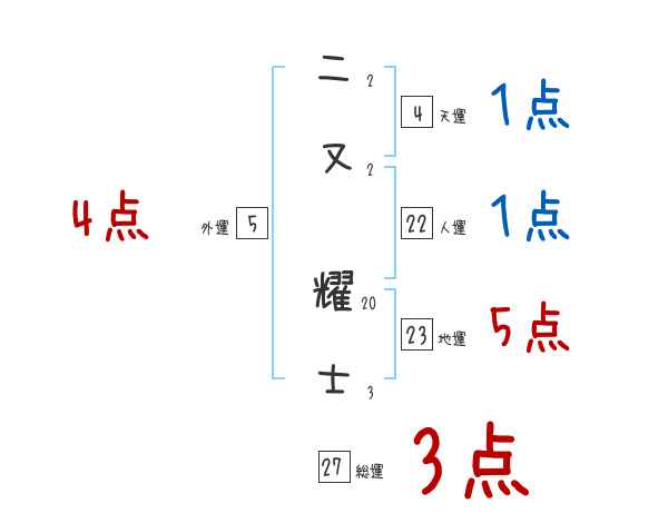 二又耀士さんの画数の鑑定結果