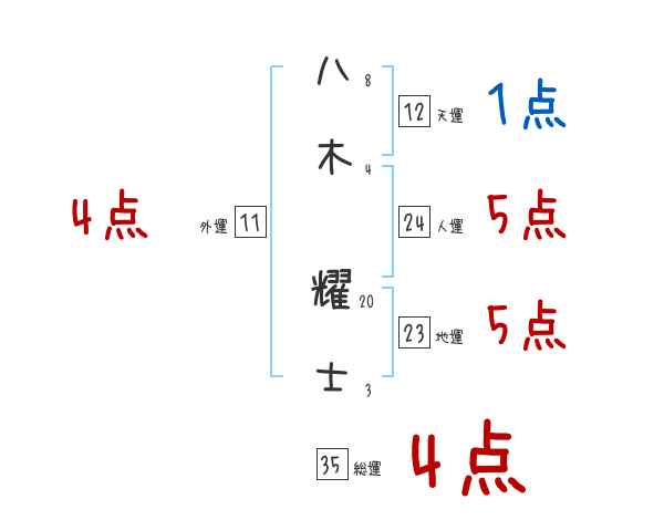 八木耀士さんの画数の鑑定結果