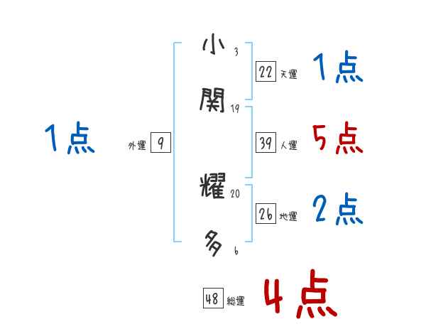 小関耀多さんの画数の鑑定結果