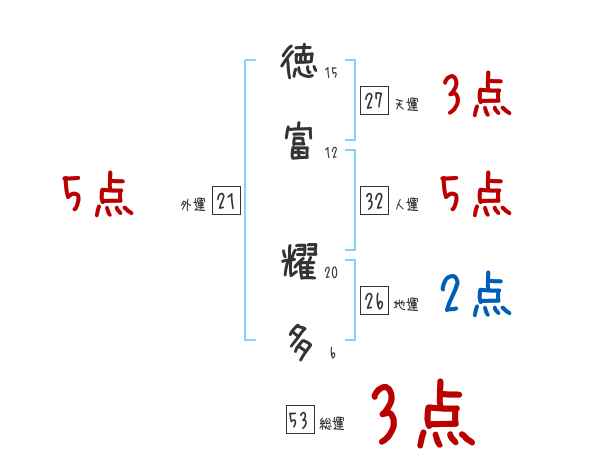徳富耀多さんの画数の鑑定結果