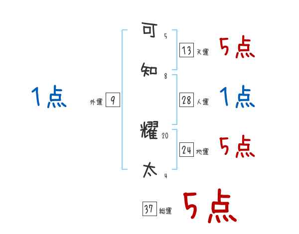 可知耀太さんの画数の鑑定結果