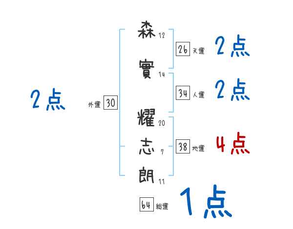 総運![]() | 森實耀志朗さんの総運は64画の1つ星!災難が多く精神的なもろさに注意。トラブルに巻き込まれないように気をつけて。 あなたの人生を表す1番重要な運勢です。生涯を通じて影響する総合運となり、主に50歳以降の晩年期に影響を及ぼします。 |