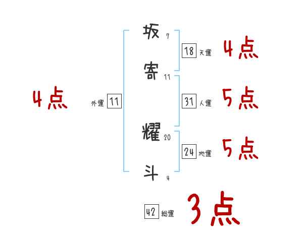 坂寄耀斗さんの画数の鑑定結果