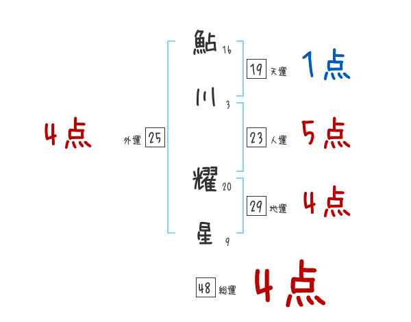 鮎川耀星さんの画数の鑑定結果
