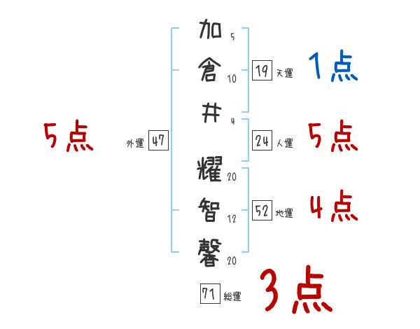 加倉井耀智馨さんの画数の鑑定結果