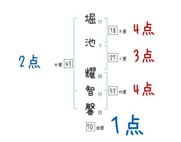 堀池耀智馨さんの画数の鑑定結果