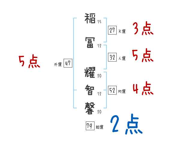 稲冨耀智馨さんの画数の鑑定結果