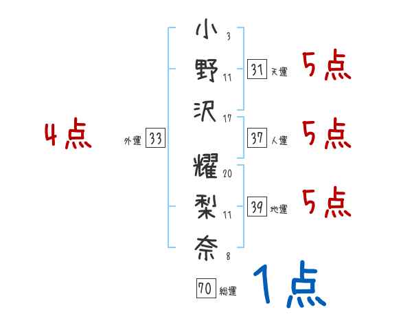 小野沢耀梨奈さんの画数の鑑定結果