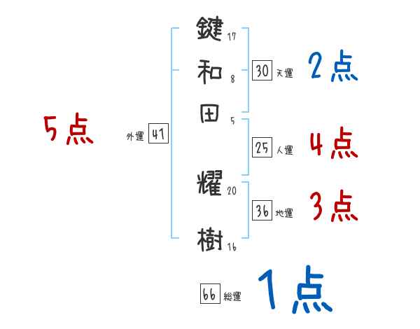 鍵和田耀樹さんの画数の鑑定結果