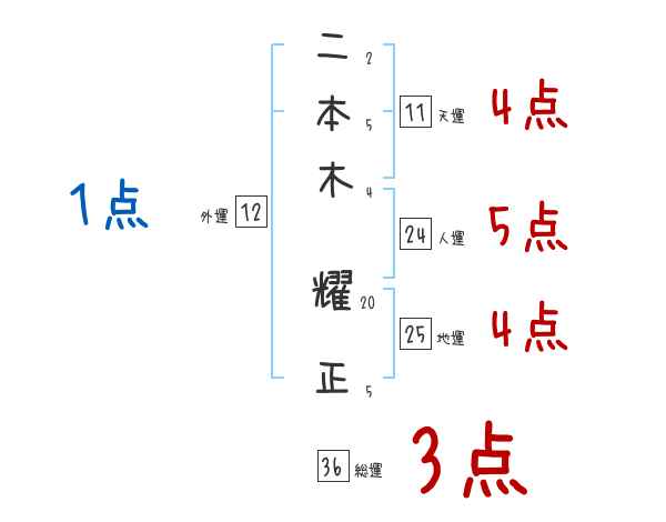 二本木耀正さんの画数の鑑定結果