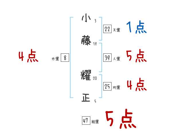 小藤耀正さんの画数の鑑定結果