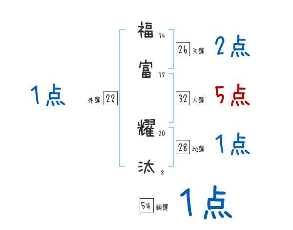 人運![]() | 福富耀汰さんの人運は32画の5つ星!柔軟性があり成功する。チャンスが多く金運が良い。 性格や才能などを表す2番目に重要な運勢です。人間関係や協調性、社会的な成功に影響します。主に20歳から50歳ぐらいまでの中年期の運勢を表します。 |