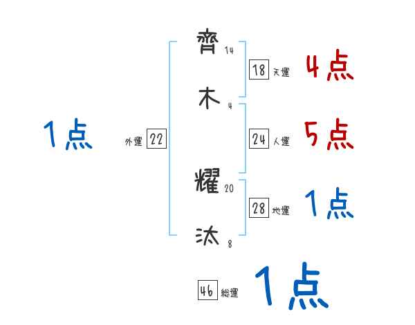 齊木耀汰さんの画数の鑑定結果
