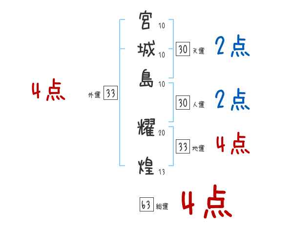 家系が持つ宿命的な運勢を表します。祖先から受け継いだ苗字ですので自分の力が及びません。家柄を象徴します。