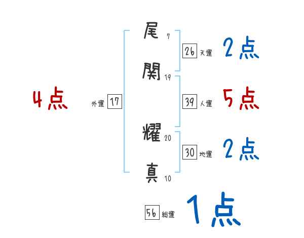 尾関耀真さんの画数の鑑定結果