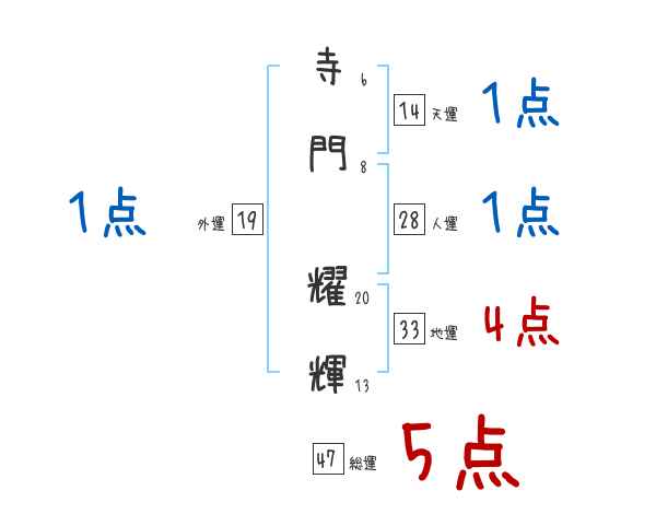寺門耀輝さんの画数の鑑定結果