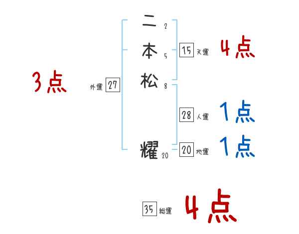 二本松耀さんの画数の鑑定結果