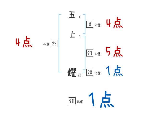 五上耀さんの画数の鑑定結果