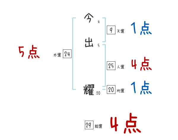 今出耀さんの画数の鑑定結果