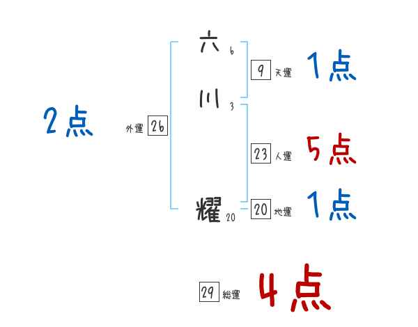 六川耀さんの画数の鑑定結果