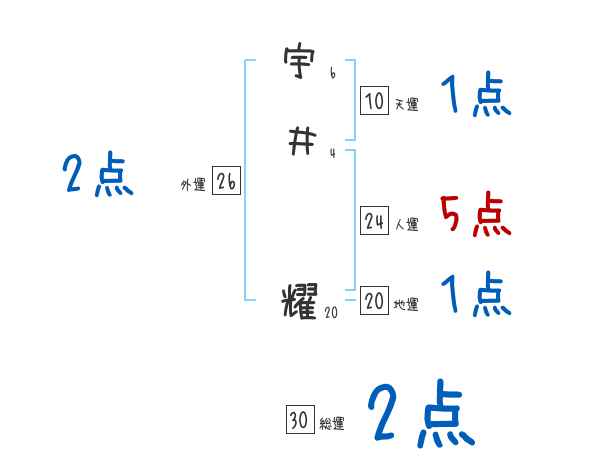 総運![]() | 宇井耀さんの総運は30画の2つ星!浮き沈みの激しさに注意しましょう。 あなたの人生を表す1番重要な運勢です。生涯を通じて影響する総合運となり、主に50歳以降の晩年期に影響を及ぼします。 |