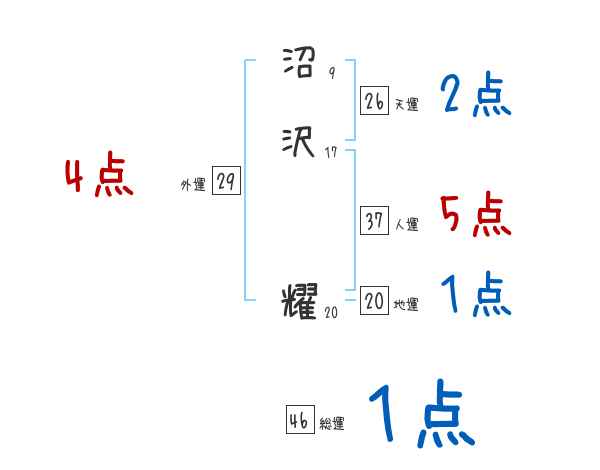 沼沢耀さんの画数の鑑定結果
