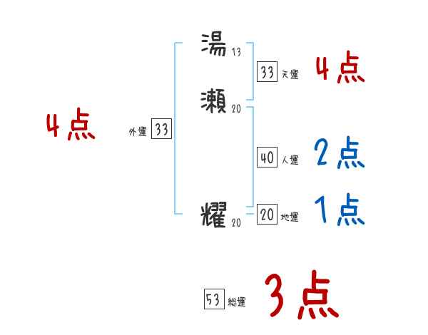 湯瀬耀さんの画数の鑑定結果