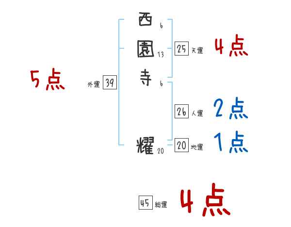 西園寺耀さんの画数の鑑定結果