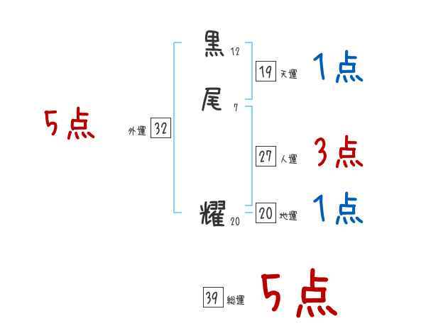 天運![]() | 黒尾耀さんの天運は19画の1つ星!優れた才能を持ちますが、協調性が足りないことも。周りの人と協力する事を意識しましょう。 家系が持つ宿命的な運勢を表します。祖先から受け継いだ苗字ですので自分の力が及びません。家柄を象徴します。 |