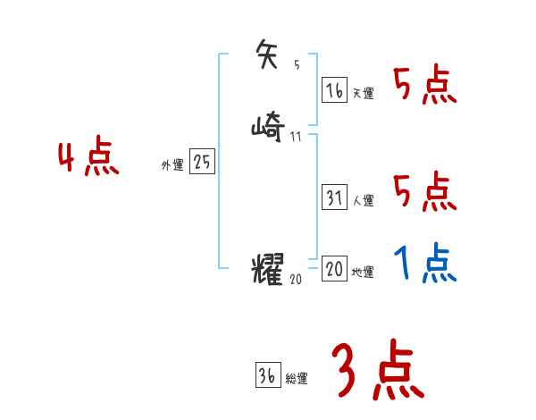 矢崎耀さんの画数の鑑定結果