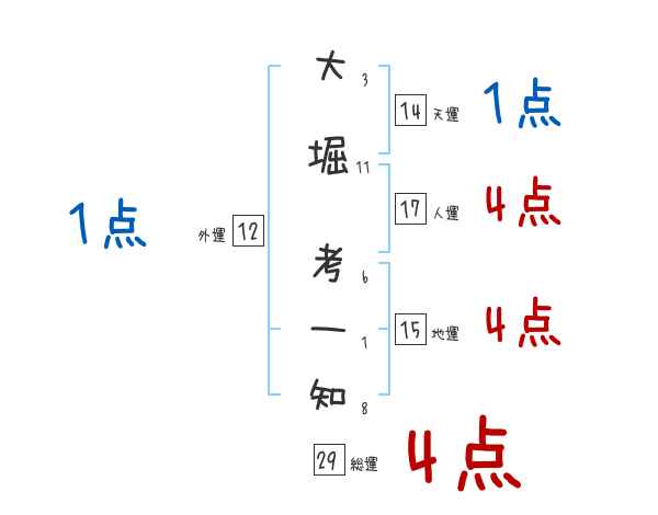 天運![]() | 大堀考一知さんの天運は14画の1つ星!人に対して優しいがストレスを溜め込みがち。人間関係のトラブルを避けるよう気をつけましょう。 家系が持つ宿命的な運勢を表します。祖先から受け継いだ苗字ですので自分の力が及びません。家柄を象徴します。 |