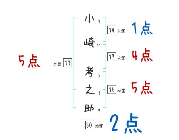 小崎考之助さんの画数の鑑定結果