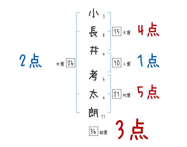 小長井考太朗さんの画数の鑑定結果