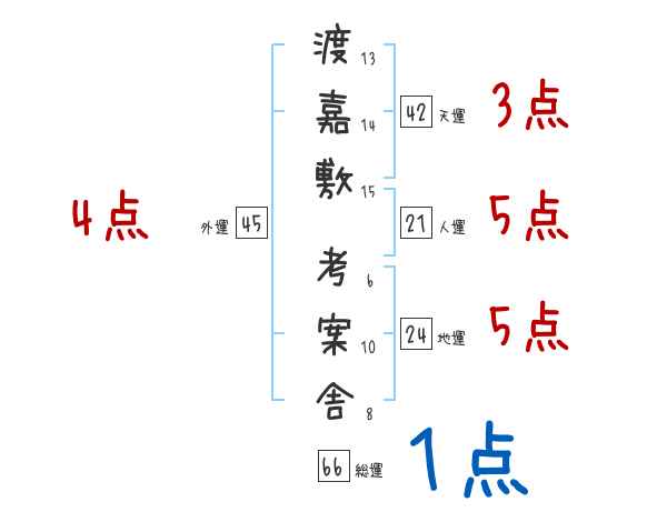 渡嘉敷考案舎さんの画数の鑑定結果