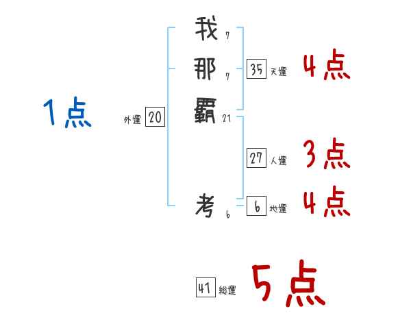 人運![]() | 我那覇考さんの人運は27画の3つ星!頭脳明晰だが強情で摩擦が多い傾向。孤立に注意。 性格や才能などを表す2番目に重要な運勢です。人間関係や協調性、社会的な成功に影響します。主に20歳から50歳ぐらいまでの中年期の運勢を表します。 |