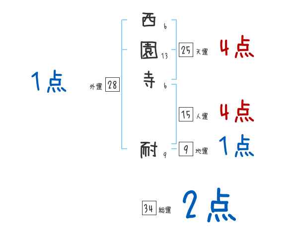 西園寺耐さんの画数の鑑定結果