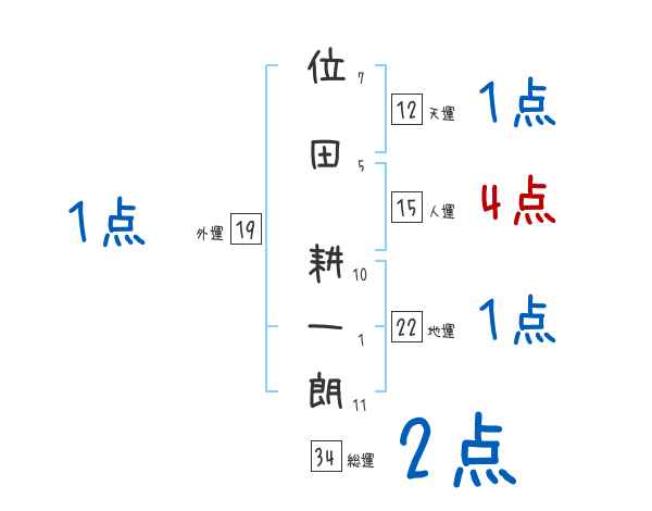 天運![]() | 位田耕一朗さんの天運は12画の1つ星!簡単な失敗で諦めてしまいやすいかも。着実に行動すると良いでしょう。 家系が持つ宿命的な運勢を表します。祖先から受け継いだ苗字ですので自分の力が及びません。家柄を象徴します。 |