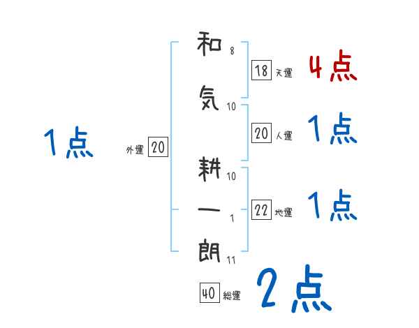 地運![]() | 和気耕一朗さんの地運は22画の1つ星!努力することが苦手ないっぽう手先が器用。芸術性にも優れる。 個性を表す基礎的な運勢です。性格形成や対人関係、行動力など家庭環境に影響されます。主に誕生してから20歳くらいまでの若年期の運勢を表します。 |