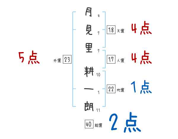 天運![]() | 月見里耕一朗さんの天運は18画の4つ星!情熱的で剛気。忍耐力があり信頼される。 家系が持つ宿命的な運勢を表します。祖先から受け継いだ苗字ですので自分の力が及びません。家柄を象徴します。 |