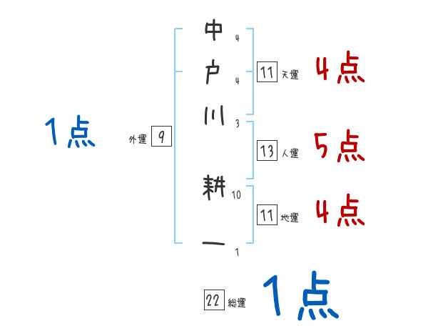中戸川耕一さんの画数の鑑定結果