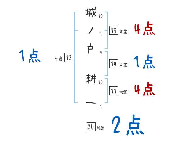 総運![]() | 城ノ戸耕一さんの総運は26画の2つ星!波瀾万丈かも。信頼できる人を大事にしましょう。 あなたの人生を表す1番重要な運勢です。生涯を通じて影響する総合運となり、主に50歳以降の晩年期に影響を及ぼします。 |