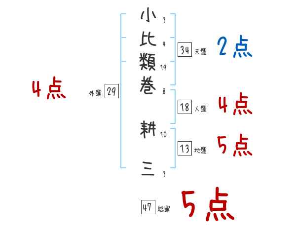 外運![]() | 小比類巻耕三さんの外運は29画の4つ星!完全主義で才能がある。厳格な心の持ち主。 生活面を象徴する運勢です。外部から受ける影響力を表し、結婚運、家庭運や職場、環境への順応性を表します。 |