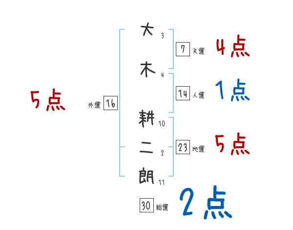 外運![]() | 大木耕二朗さんの外運は16画の5つ星!人望が厚く大きく発展する。逆転成功が見える。 生活面を象徴する運勢です。外部から受ける影響力を表し、結婚運、家庭運や職場、環境への順応性を表します。 |