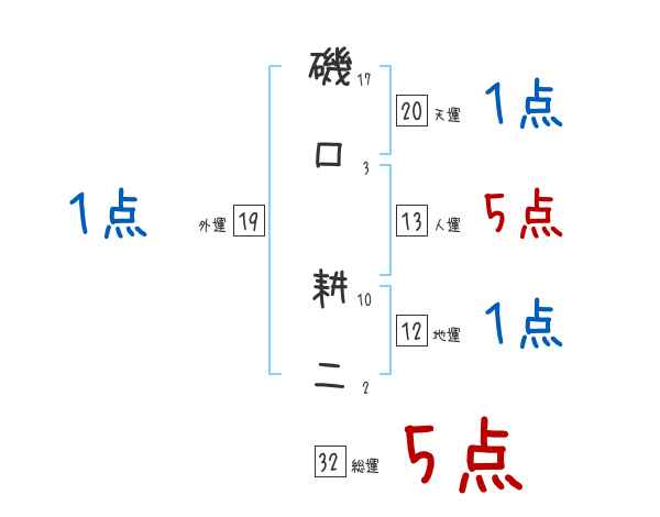 総運![]() | 磯口耕二さんの総運は32画の5つ星!柔軟性があり成功する。チャンスが多く金運が良い。 あなたの人生を表す1番重要な運勢です。生涯を通じて影響する総合運となり、主に50歳以降の晩年期に影響を及ぼします。 |