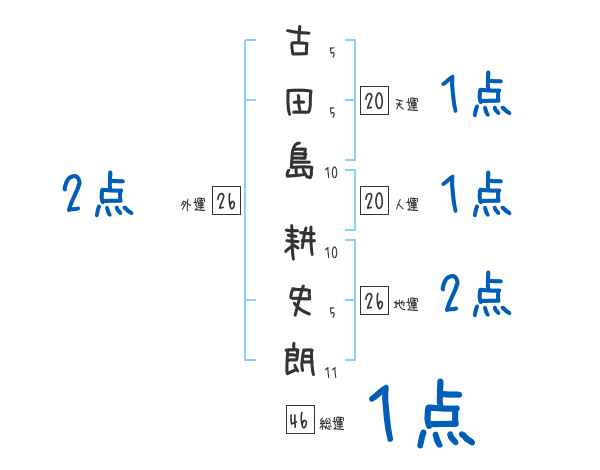 古田島耕史朗さんの画数の鑑定結果
