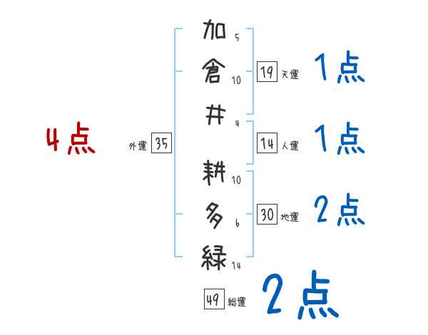 加倉井耕多緑さんの画数の鑑定結果