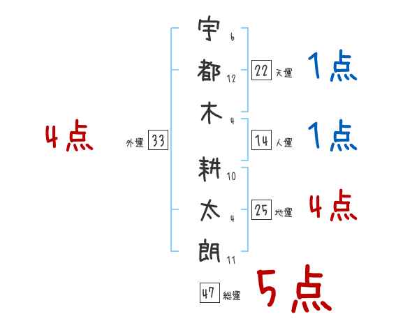 宇都木耕太朗さんの画数の鑑定結果