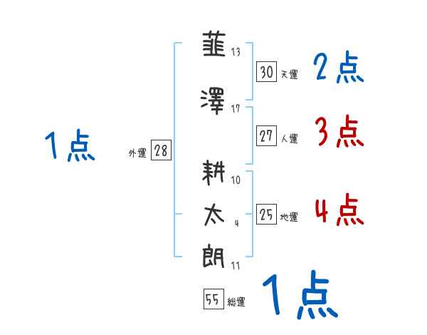 韮澤耕太朗さんの画数の鑑定結果