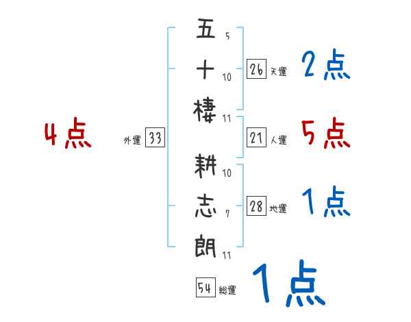 五十棲耕志朗さんの画数の鑑定結果